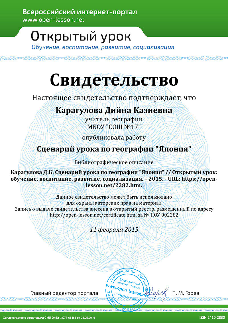 Класс, в котором проводился урок географии на тему «Япония», работает по программам среднего (полного) общего образования по географии. Образовательная программа по географии В. П. Максаковского «Экономическая и социальная география мира» («Дрофа», М., 2001).