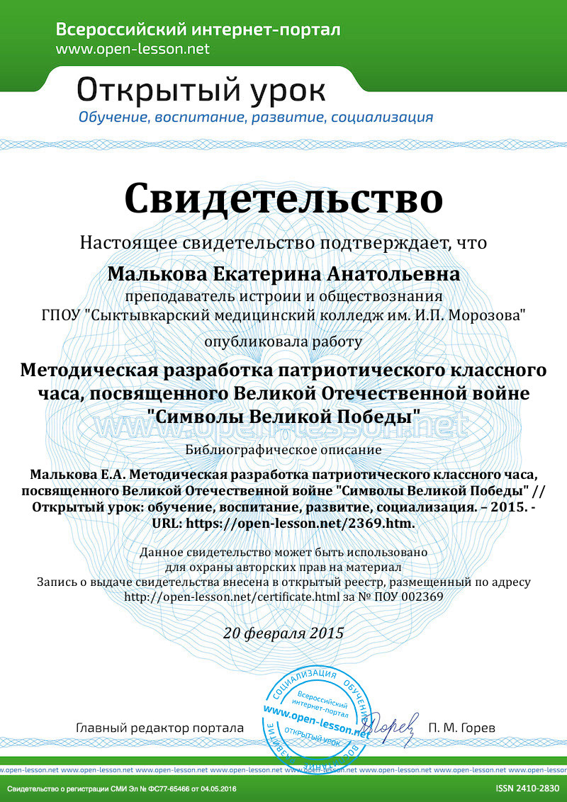 2) Беседа о значимости и актуальности темы информационного часа. Мотивация. Определение участников – докладчиков;