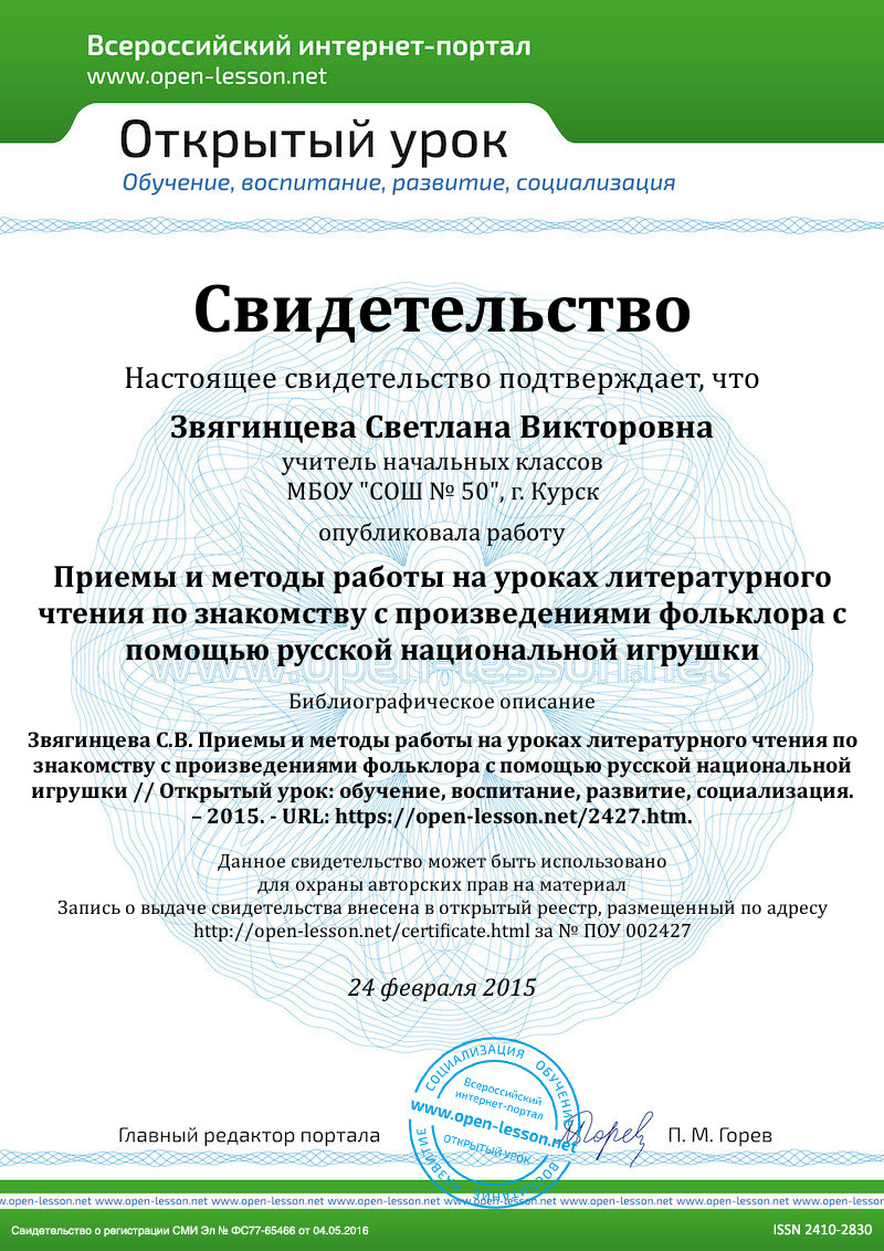 Именно поэтому ребенка нужно не просто знакомить с народной игрушкой, но и использовать ее при изучении фольклора на уроках литературного чтения.