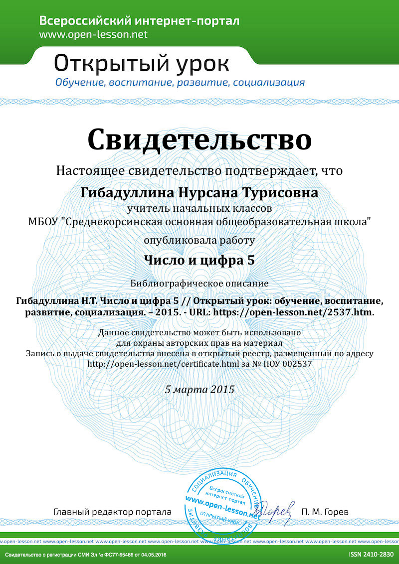 Число и цифра 5. |