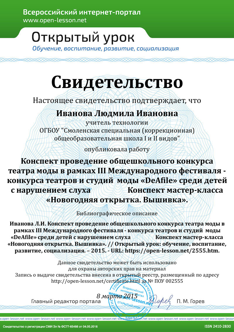 1. Приветствие. Сегодня мы проводим мастер – класс «Изготовление новогодней открытки», вам предстоит изготовить открытку с новогодним сюжетом – вышивкой и поздравительной надписью. Напоминаю правила безопасности при работе с ножницами и иглой.