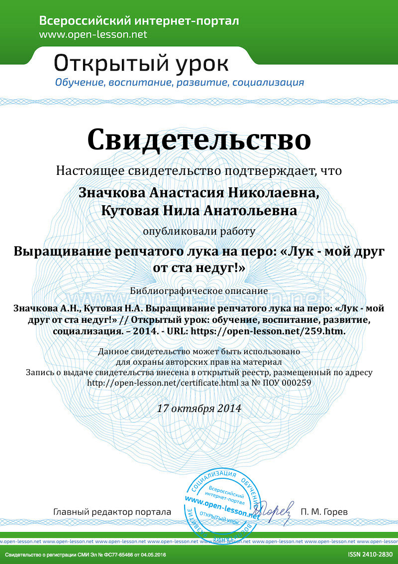 - Благодаря регулярному приему в пищу зеленого пера лука во время обеда снижен показатель заболеваемости детей в группе с 5% до 3%.