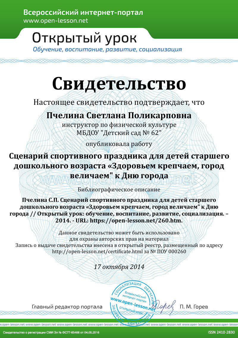Описание материала: сценарий спортивного праздника для детей старшего дошкольного возраста «Здоровьем крепчаем, город величаем", посвященный празднованию Дня города Мурома.