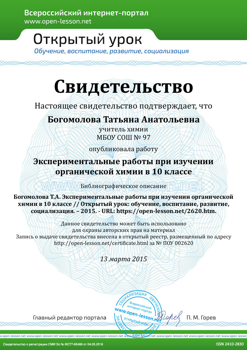 Эксперимент при изучении химии в школе играет большую роль для понимания данного предмета. Он важен как в органической, так и в неорганической химии. Но в курсе органической химии эксперимент имеет свои специфические особенности: (5)
