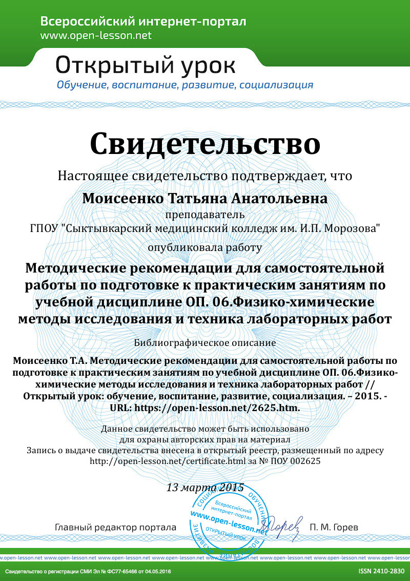 - 3.Полеес М.Э. Аналитическая химия. – М.: Медицина, 1987