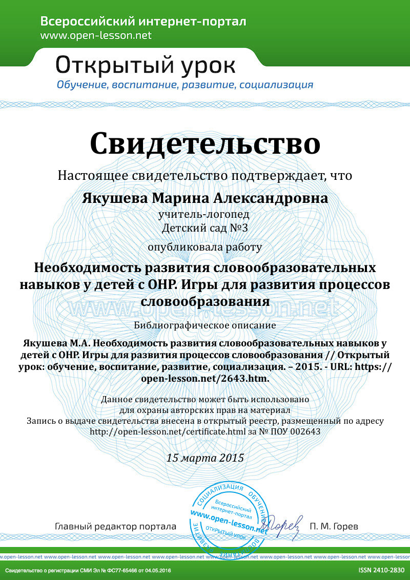 Формированию у дошкольников словообразовательных умений и навыков необходимо уделять большое внимание, так как это способствует расширению и обогащению словарного запаса, формированию умения строить связные слова высказывания, а также служит подготовкой к обучению грамоте.