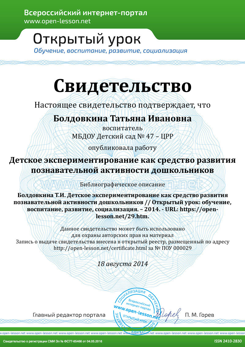 6. Савинова, И.А. Развитие познавательной активности посредством экспериментирования /И.А. Савинова // Воспитатель дошкольного образовательного учреждения. 2008.- №12.-С.112-118.
