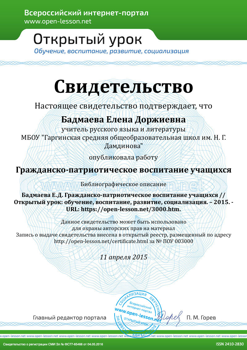 Автор: Бадмаева Елена Доржиевна