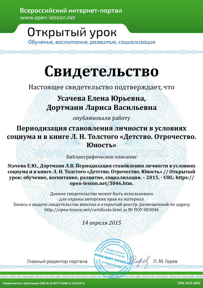 Периодизация становления личности в условиях социума и в книге Л.Н. Толстого « Детство. Отрочество. Юность»