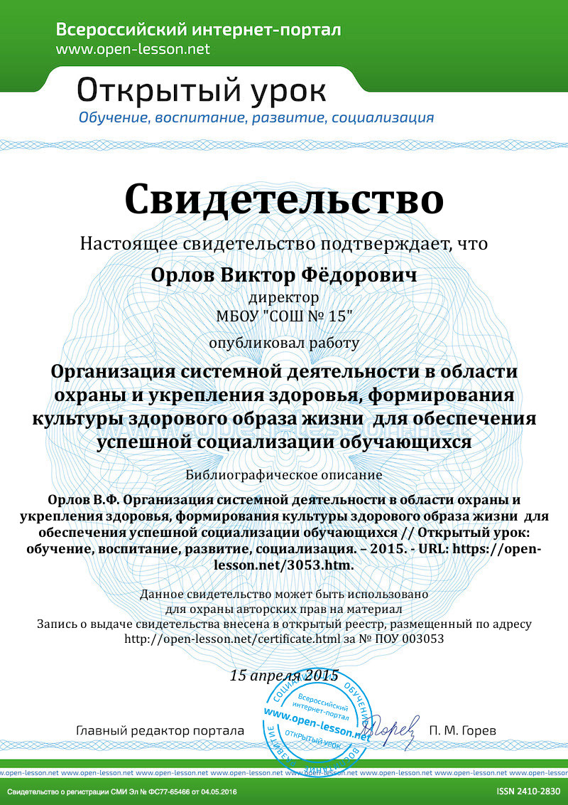 Проблема сохранения и укрепления здоровья детей, обучающихся и населения, формирования у них культуры здоровья – одна из самых актуальных на сегодняшний день в России. Она имеет стратегический характер, поскольку снижение духовного и физического потенциала нации ведёт к ослаблению ресурса экономического развития страны и утрате национальной безопасности.