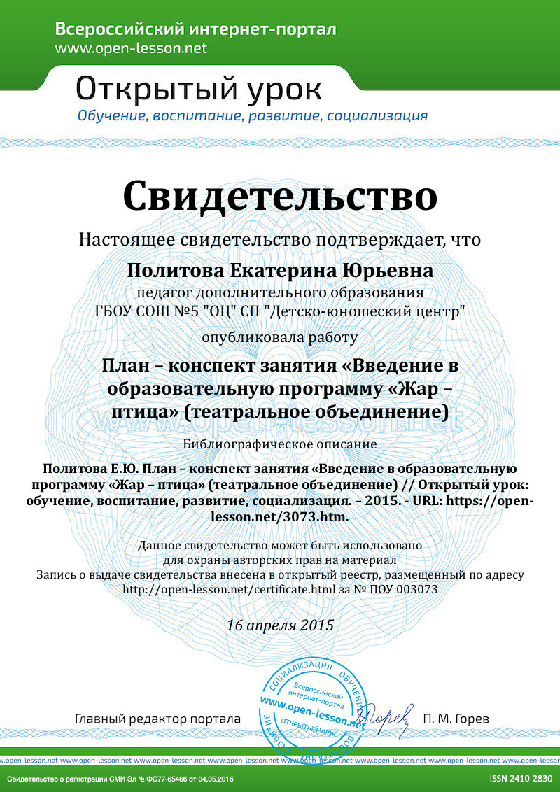 Автор: Политова Екатерина Юрьевна