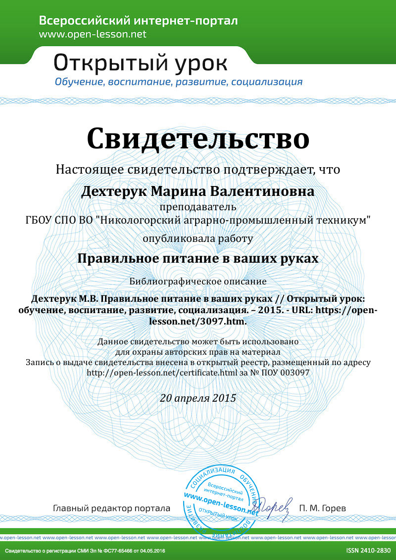 На уроке использованы современные педагогические технологии, которые помогают заинтересовать учащихся вопросами правильного питания. Дети получают новые сведения о правильном питании. Урок построен на сотрудничестве педагога и подростков.