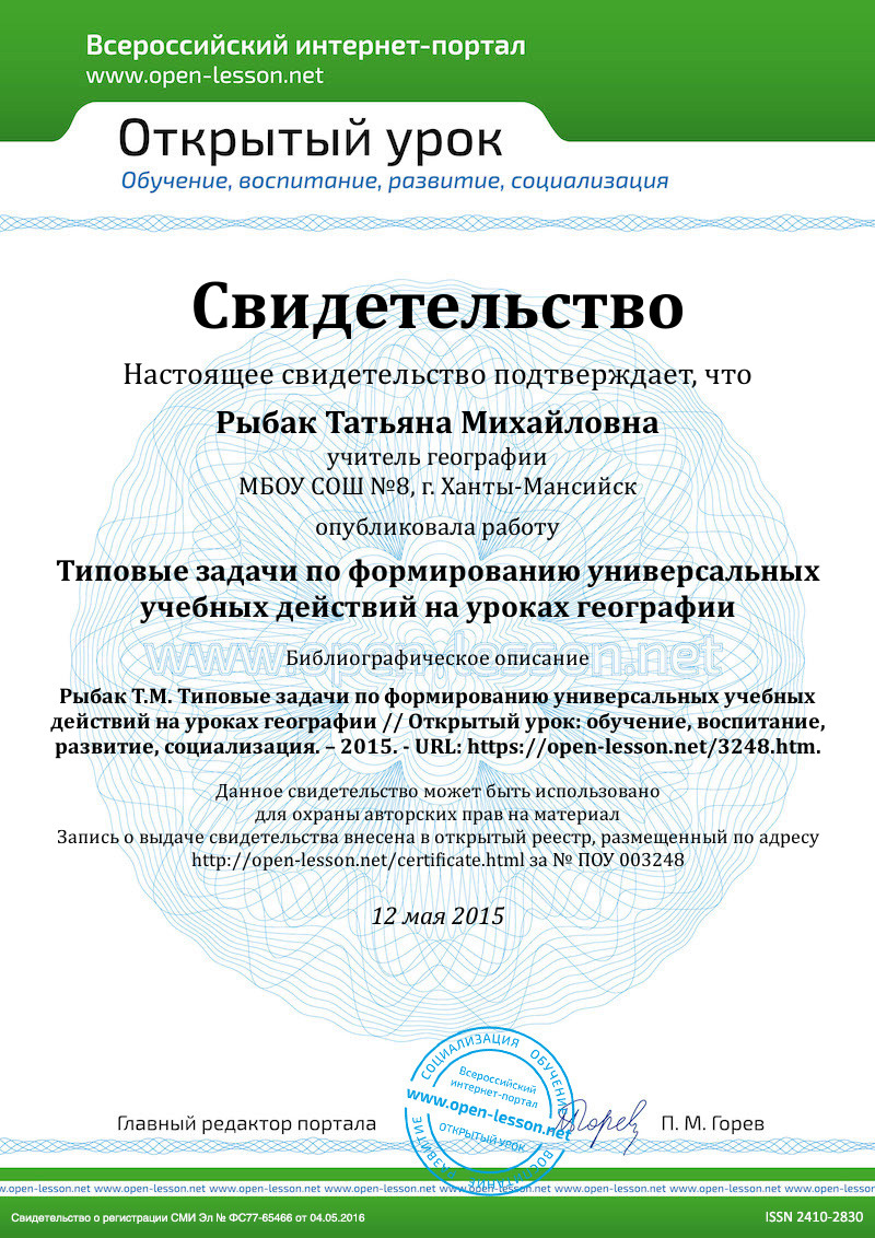 В заключение хочется сказать, что формирование универсальных учебных действий возможно на уроках географии при использовании различных современных педагогических технологий, при условии готовности учителя к сотрудничеству с учащимися и другими учителями предметниками.
