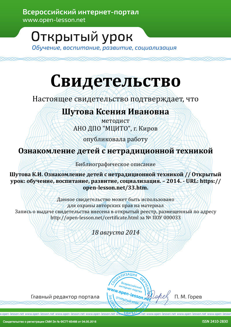 - Методика «Использование нетрадиционных приемов изодеятельности в работе с детьми» журнал «Справочник старшего воспитателя» №2/2012