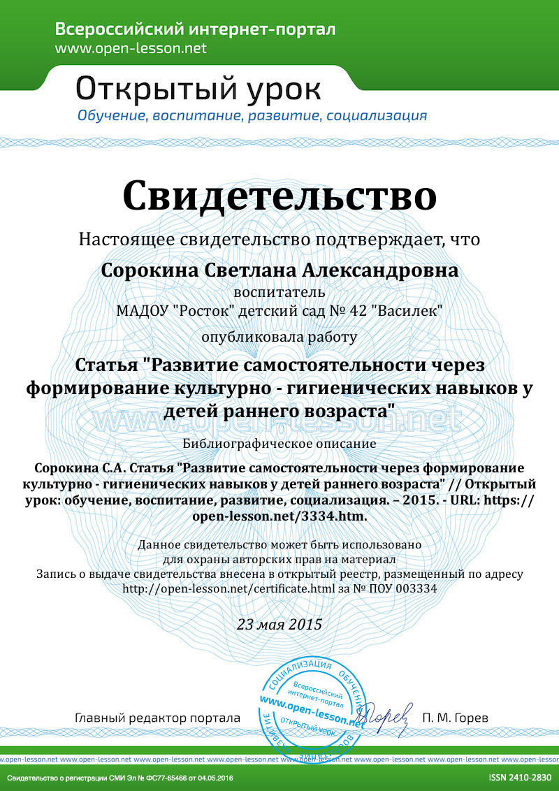 С введением Федерального государственного образовательного стандарта дошкольного образования и закона «Об образовании в Российской Федерации» особое значение отводится полноценному проживанию ребенком всех этапов детства и перед нами поставлены следующие задачи (целевые ориентиры) по формированию культурно – гигиенических навыков у детей раннего возраста: