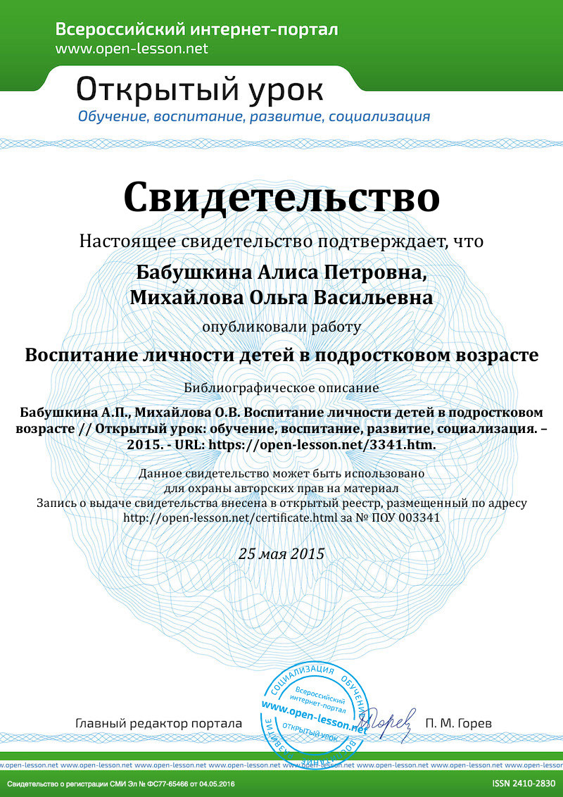 Самопознание подростка происходит при сравнении себя с другими людьми: взрослыми, сверстниками. В этом возрасте они стараются копировать тех людей, которые вызывают у них большой интерес, то есть своих кумиров. Подросток хочет показать себя взрослее, чем он есть на самом деле. И здесь он может встать на правильную дорогу или пойти по течению. Поэтому очень важно задуматься о том, как же воспитывается подросток и в какой семье он растет. Ведь главную роль в воспитании играет семья. Семья должна воспитать человека, который должен быть интеллектуально развит, физически здоров и должен обладать в жизни основными человеческими ценностями.