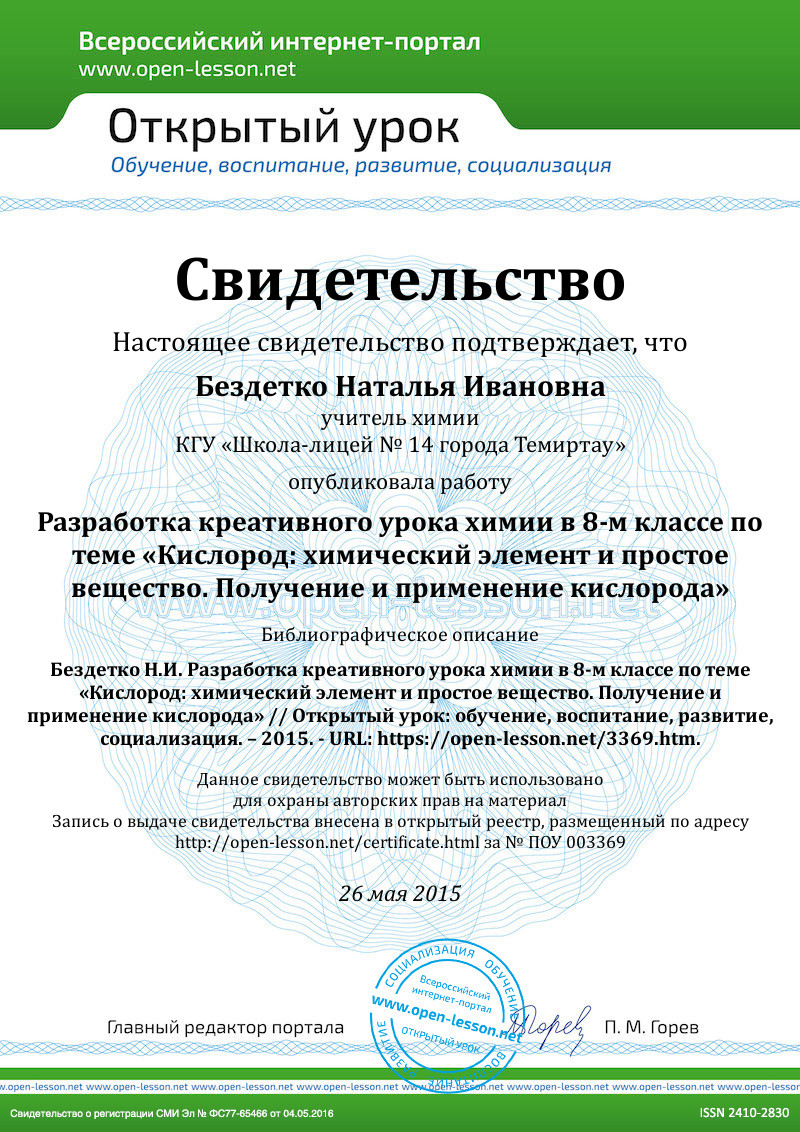 Цель: создание условий для усвоения темы: «Кислород: химический элемент и простое вещество. Получение и применение кислорода», развитие готовности мышления и усвоению новых способов деятельности, развитие мыслительных операций школьников, навыков самоконтроля; развитие информационной, коммуникативной компетентности учащихся.