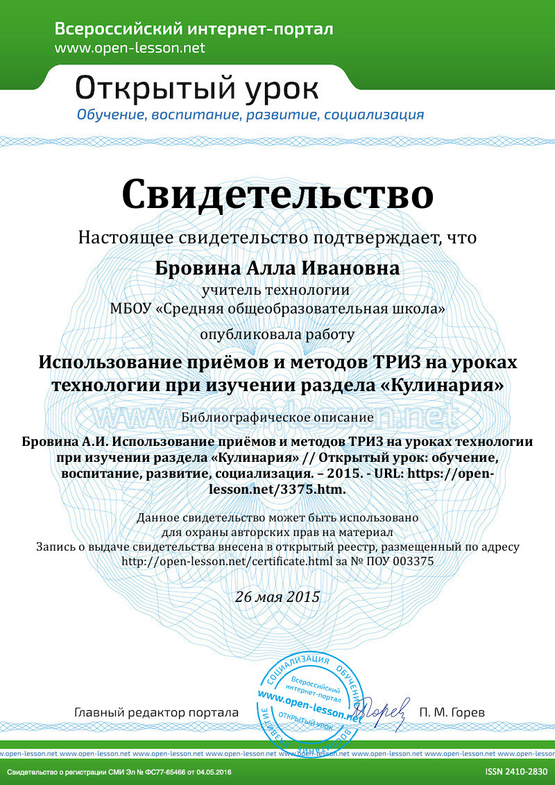 Таким образом, определено позитивное влияние использования методов теории решения изобретательских задач (ТРИЗ) на уроках технологии при обучении учащихся раздела «Кулинария» по теме «Бутерброды»