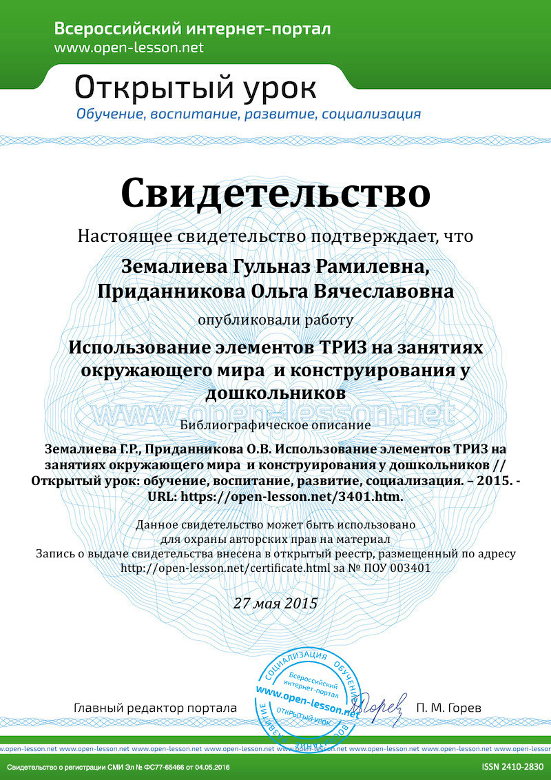 Содержательная часть направлена в целом на развитие творческого воображения и фантазии детей и обеспечивает пропедевтику теории решения изобретательских задач. (Г. С. Альтшуллер) [1].