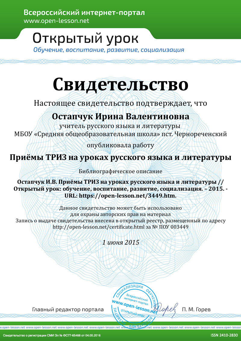 Познавательные и практические задания, включенные в ход уроков русского языка и литературы, способствуют лучшему усвоению знаний и формированию необходимых предметных умений и навыков. Мне хотелось бы подробнее остановиться на некоторых приемах ТРИЗ, критического мышления, использование которых основывается на содержательных обобщениях.