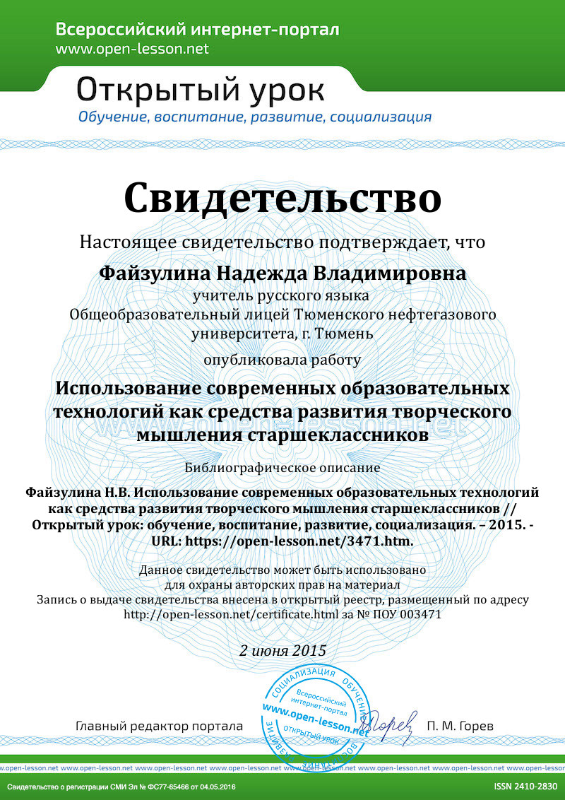 - Федеральный государственный образовательный стандарт основного общего образования: Федер. Закон Рос. Федерации от 17декабря 2010 г. № 1897-ФЗ.