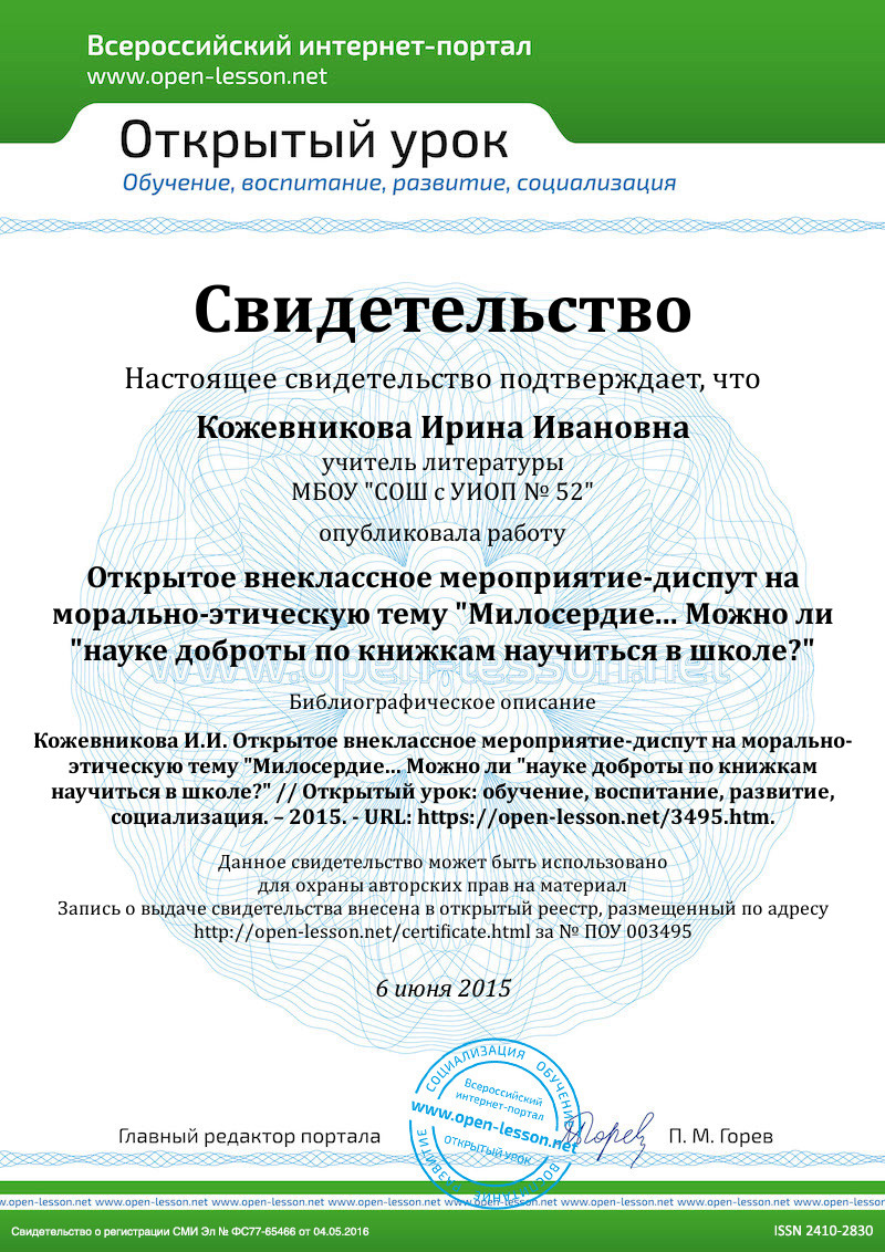Милосердие и сострадание. По определению В. И. Даля, это “сердцеболие, сочувствие, любовь на деле, готовность делать добро всякому, жалостливость, мягкосердечность". В воспитании этих чувств нет надежней союзника, чем художественная литература. Именно она обладает способностью проникать в самое сердце человека, задевать струны его души. Находясь один на один с книгой, человек до конца откровенен и честен перед собой, и тогда живое слово падает на благодатную почву.