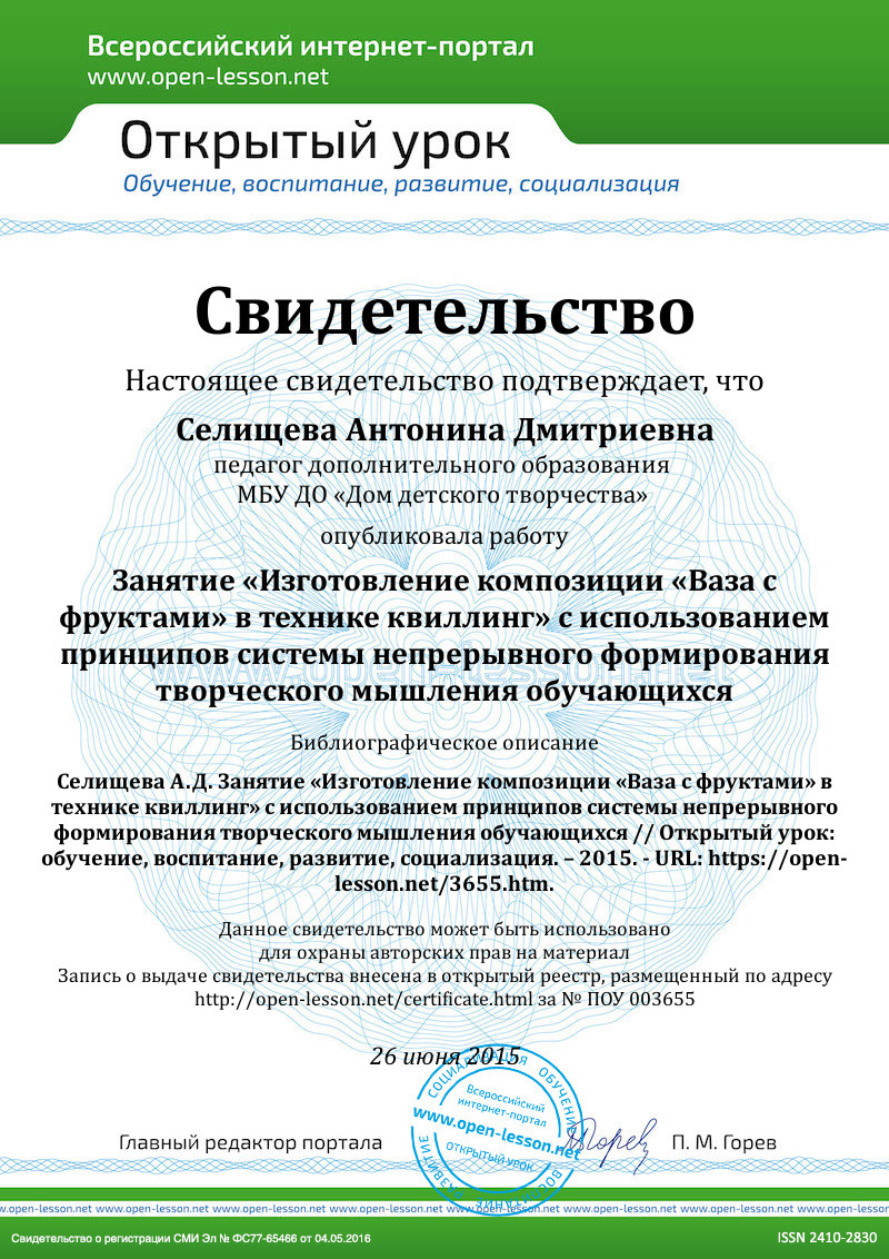 - Горев П. М., Утёмов В. В. А.Юртакова «Квиллинг полуобъемные композиции»