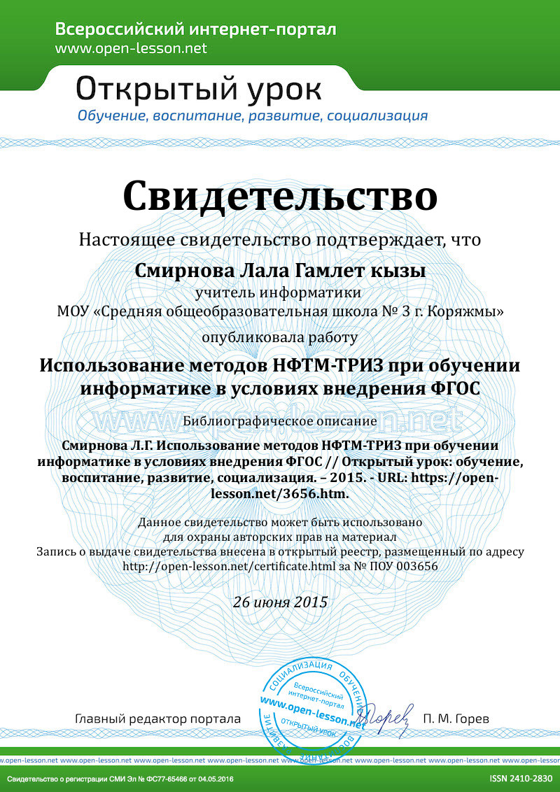 Помощником в решении этих задач может служить инновационная педагогическая система НФТМ-ТРИЗ профессора М. Зиновкиной. НФТМ - непрерывное формирование творческого мышления и развитие творческих способностей учащихся. ТРИЗ – это научно-практическое направление по разработке и применению эффективных методов решения творческих задач, генерированию новых идей и решений в науке, технике и других областях человеческой деятельности. Цель данной системы НФТМ-ТРИЗ: обеспечение становления, т. е. формирования и развития, творческой личности обучаемого. А творческая личность - это личность, обладающая системным мышлением, способная решать творческие задачи любого уровня творчества. Система НФТМ-ТРИЗ основана на поисково-познавательной деятельности учащихся, начиная с самого раннего детского возраста. [2, 3]
