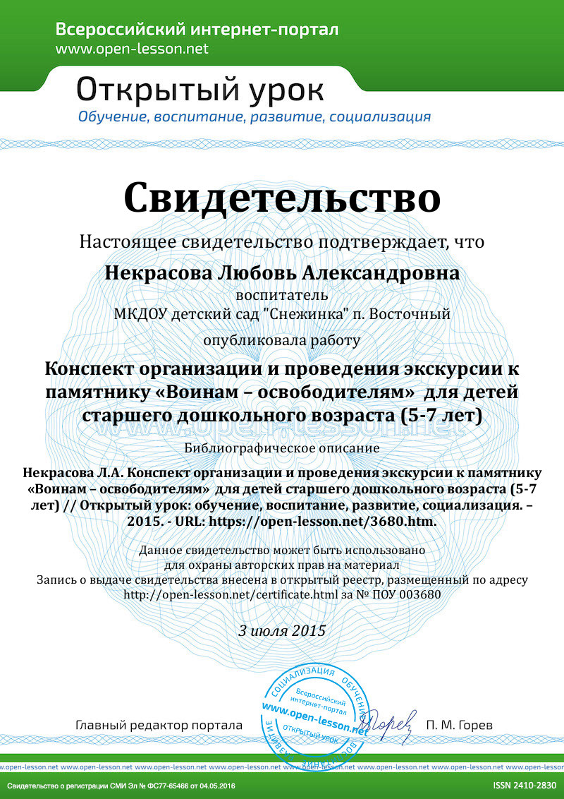 - Решетова Е. Праздник Победы\\журнал «Ребёнок в детском саду» №2/2012, стр. 32.