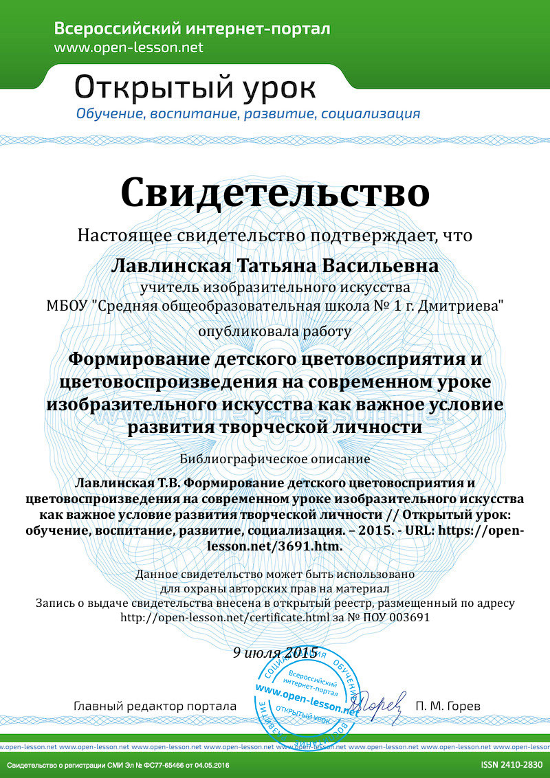 Это очень ценное качество, которое надо поддерживать, развивать в процессе обучения, т. к. оно является условием развития художественного восприятия цвета у школьника