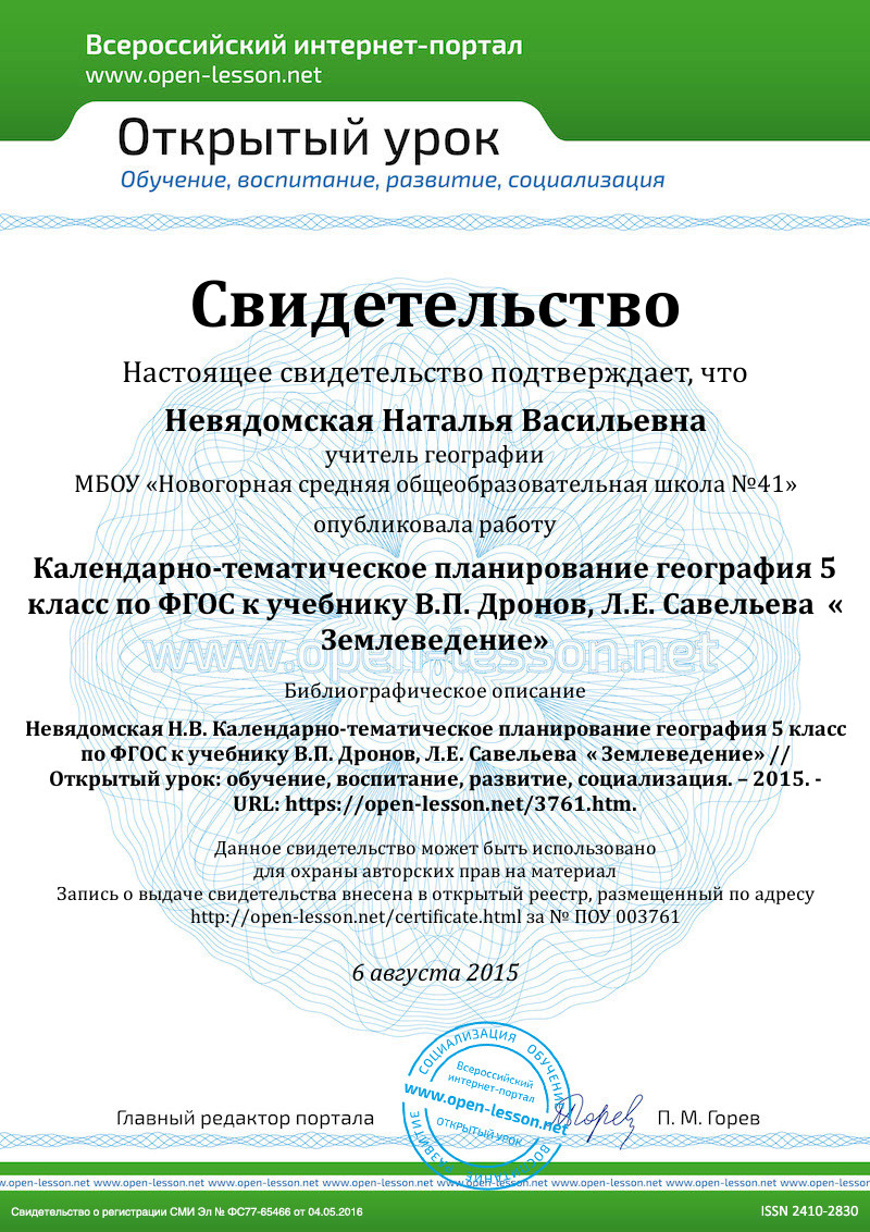 Календарно-тематическое планирование география 5 класс по ФГОС к учебнику В.П. Дронов, Л.Е. Савельева « Землеведение»