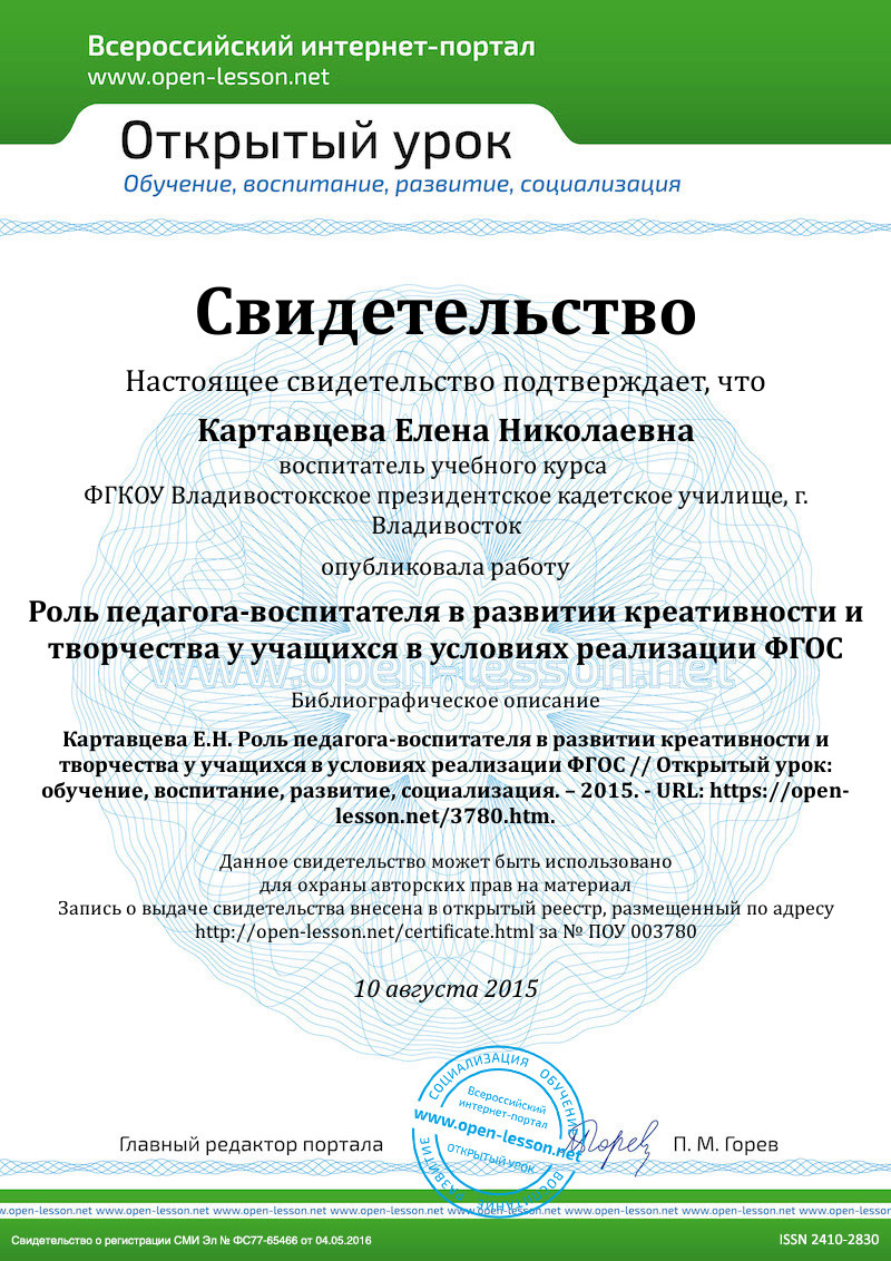 Это должно способствовать становлению креативной и творческой личности; Становление креативной личности – это «формирование и развитие совокупности устойчивых креативных качеств человека, характеризующих его индивидуальность при обучении творчеству и творческой самоактуализации». В свою очередь становление творческой личности – это «формирование и развитие творческой личности на основе обучения её творчеству и передаче ей опыта объективной профессионально-творческой деятельности» [1]. Все это является неотъемлемой частью развивающейся личности и роли педагога-воспитателя в этом процессе.
