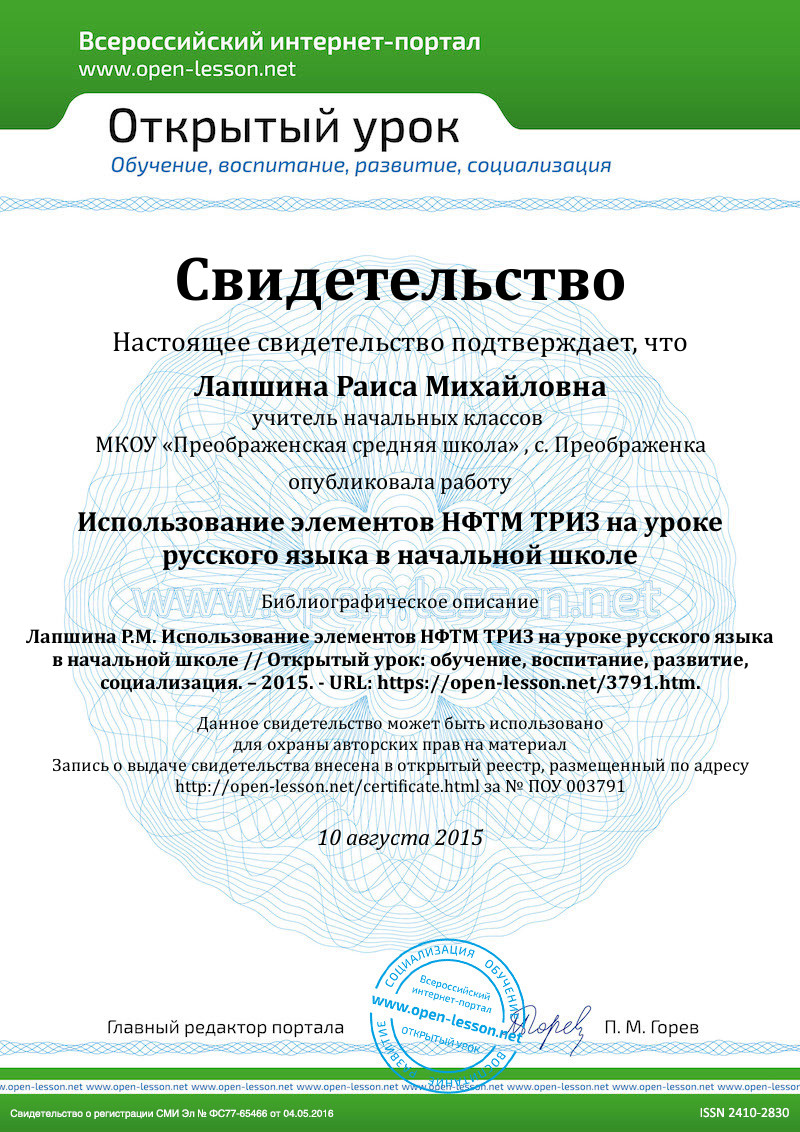 Использование учителем приёмов НФТМ-ТРИЗ на уроках русского языка позволяет достигать более глубокого усвоения знаний, а главное – включать учащихся в активную творческую деятельность на основе дидактических принципов креативного образования.