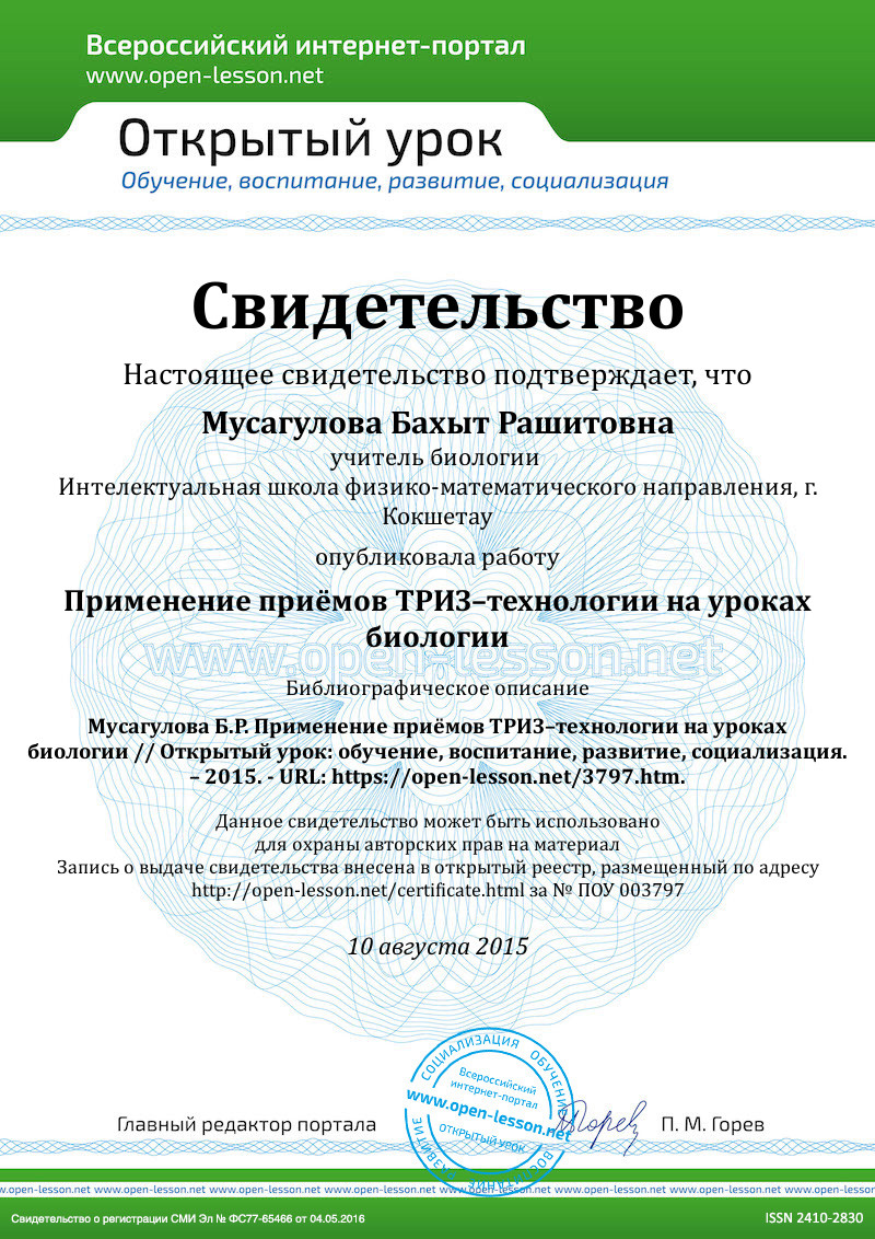 В настоящее время неоспорим факт наибольшего воздействия на процесс обучения и результаты учеников не столько деятельности администрации школ и органов управления системой образования по обеспечению учителей соответствующими ресурсами, сколько повседневной работы самого учителя в классе, направленной на воспитание и развитие учащихся (Barber and Mourshed, 2007). Учителя при этом должна беспокоить не только прочность приобретаемых учащимися знаний в той или иной области, поскольку эти знания подвергаются изменениям каждый год, и эти знания устаревают подчас раньше, чем учащиеся сумеют их усвоить. Гораздо важнее подготовить учащихся, умеющих самостоятельно учиться работать с информацией, самостоятельно совершенствовать свои знания и умения в разных областях. Приобретая, если окажется необходимым, новые знания, профессии, потому что именно этим им придется заниматься всю их сознательную жизнь. Скорость прихода информации к человеку увеличилась в тысячи раз. Поэтому наряду со знаниями необходимо владеть навыкам. Навыками сбора, обработки и систематизации, анализа информационного массива. Эти навыки очень важны в жизни. Им можно и нужно обучаться в школе. Новый тип образования напрямую связан с созданием условий для развития творческого потенциала школьника как субъекта целесообразной деятельности на основе его саморазвития, самообразования как креативного, интеллектуально-развитого человека. Триз-технология – это технология решения изобретательских задач (основатель Г. С. Альтшуллер). Основная цель этой технологии научить детей мыслить системно, с пониманием того, что происходить и как происходит. В основу Триз-технологии положено решение противоречий или ситуаций требующих, найти выход из создавшегося положения. Решение задач такого типа невозможно без использования творческого подхода. Творчество предполагает креативность мышления, нестандартный подход в выборе решения [1]. При этом основополагающим является принцип проблемности. Суть, его состоит в том, чтобы путём последовательно усложняющихся задач или вопросов создать в мышлении учащегося такую проблемную ситуацию, для выхода из которой ему не хватает имеющихся знаний, и он вынужден сам активно формировать новые знания с помощью преподавателя и с участием других слушателей, основываясь на своём или чужом опыте, логике. Таким образом, учащийся получает новые знания не в готовых формулировках преподавателя, а в результате собственной активной познавательной деятельности. Особенность применения этого принципа в том, что оно должно быть направлено на решение соответствующих специфических дидактических задач: разрушение неверных стереотипов, формирование прогрессивных убеждений, экономического мышления. Cамое главное, что содержание проблемного материала должно подбираться с учётом интересов учащихся. Одной из главных задач обучения является формирование и совершенствование умений и навыков, в том числе умения применять новые знания [2].