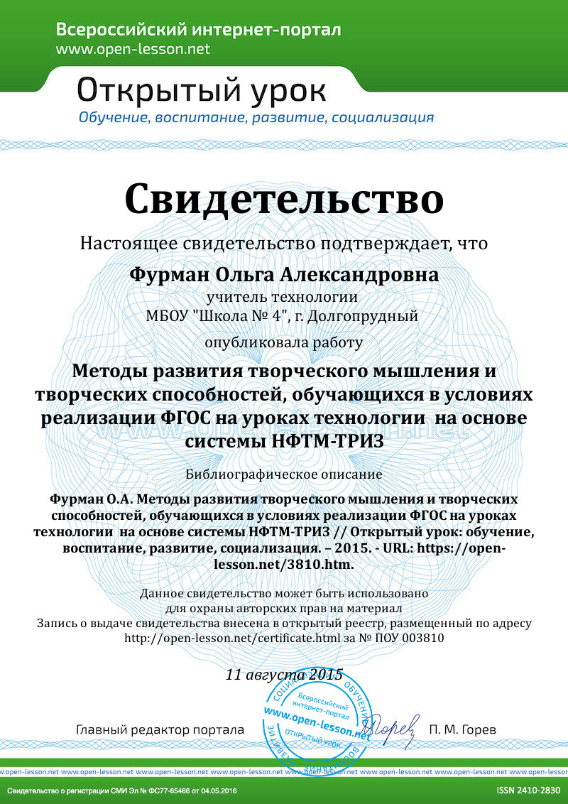 В связи с этим следует использовать инновационные педагогические технологии, побуждающие учащихся к творчеству, создающие условия для творчества детей, и стимулирующие самостоятельное творчество детей. Несомненно, такие инновационные педагогические технологии используются в многоуровневой системе НФТМ-ТРИЗ, которая предусматривает изменение структуры уроков, и их оригинальное наполнение [3].