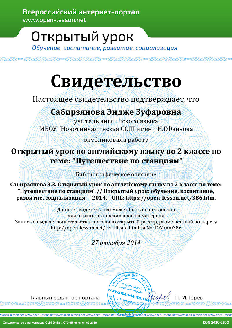 T: Thank you. Sit down, please. How are you today? I hope you are well. I see nobody is away today. Let’s begin our lesson. Today we have an unusual lesson. There are a lot of guests at our lesson. But don’t pay attention to them and don’t be afraid to answer and to make mistakes. We are just students and learn English. I forget all your names and want you introduce yourselves. ( Я забыла, как вас зовут и я хочу чтобы вы представились. Учитель обращается к каждому из учащихся с вопросом. What is you name? (дети отвечают: My name is…)).