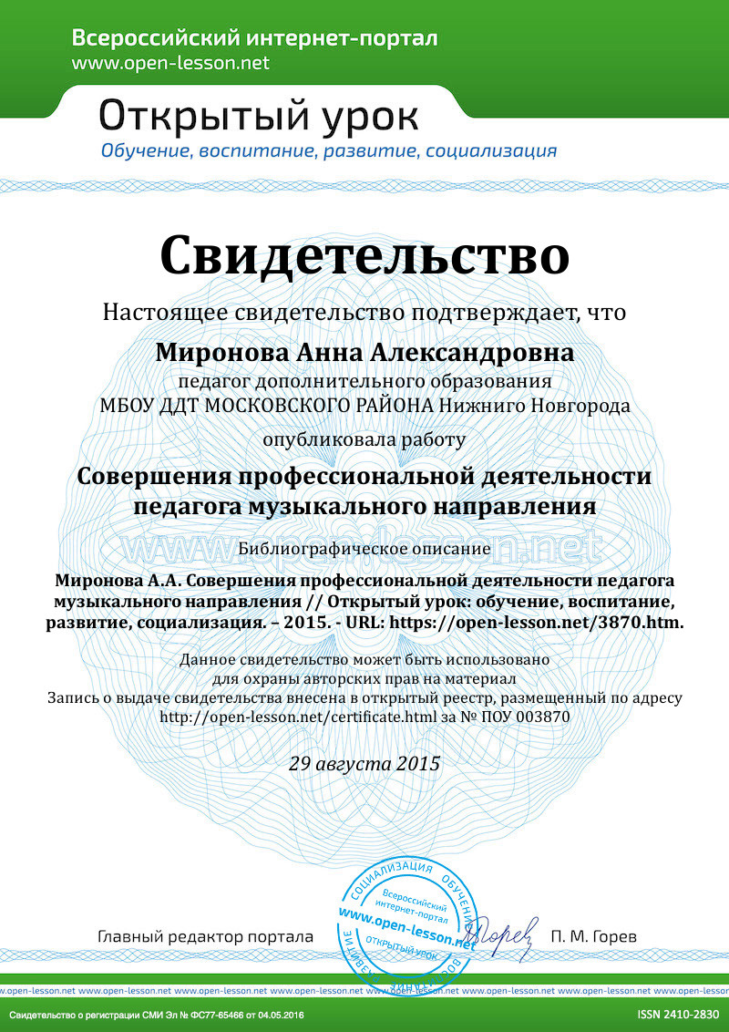 Только вместе и сообща, объединив ваше творческое мышление и видение, знания и навыки вашего ученика, активную поддержку родителей, может получиться маленький музыкальный шедевр. Дерзайте! Творите! Удачи и побед!
