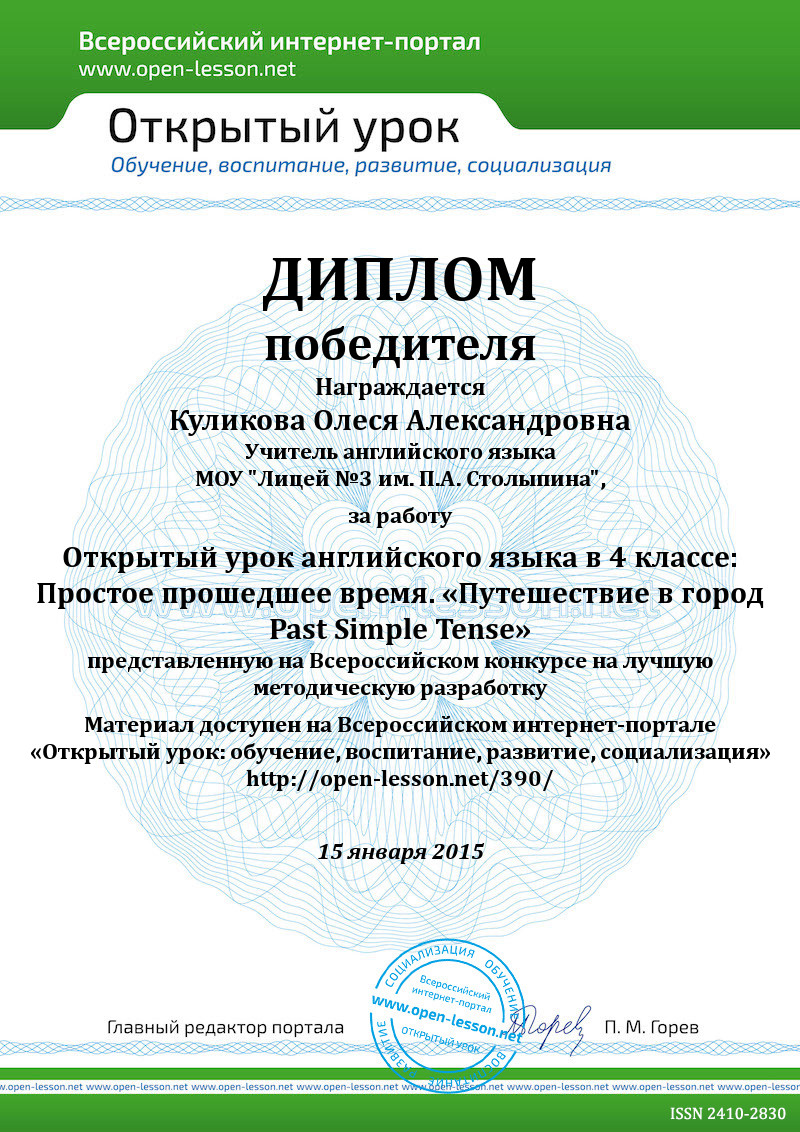 - Well, your work was very excellent, your answers were good, your pronunciation was correct. Thank you for your work! - Stand up, please and say «Good bye!» |