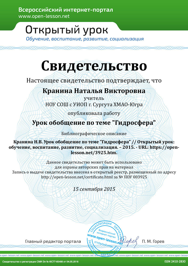 Обобщение по теме «Гидросфера».