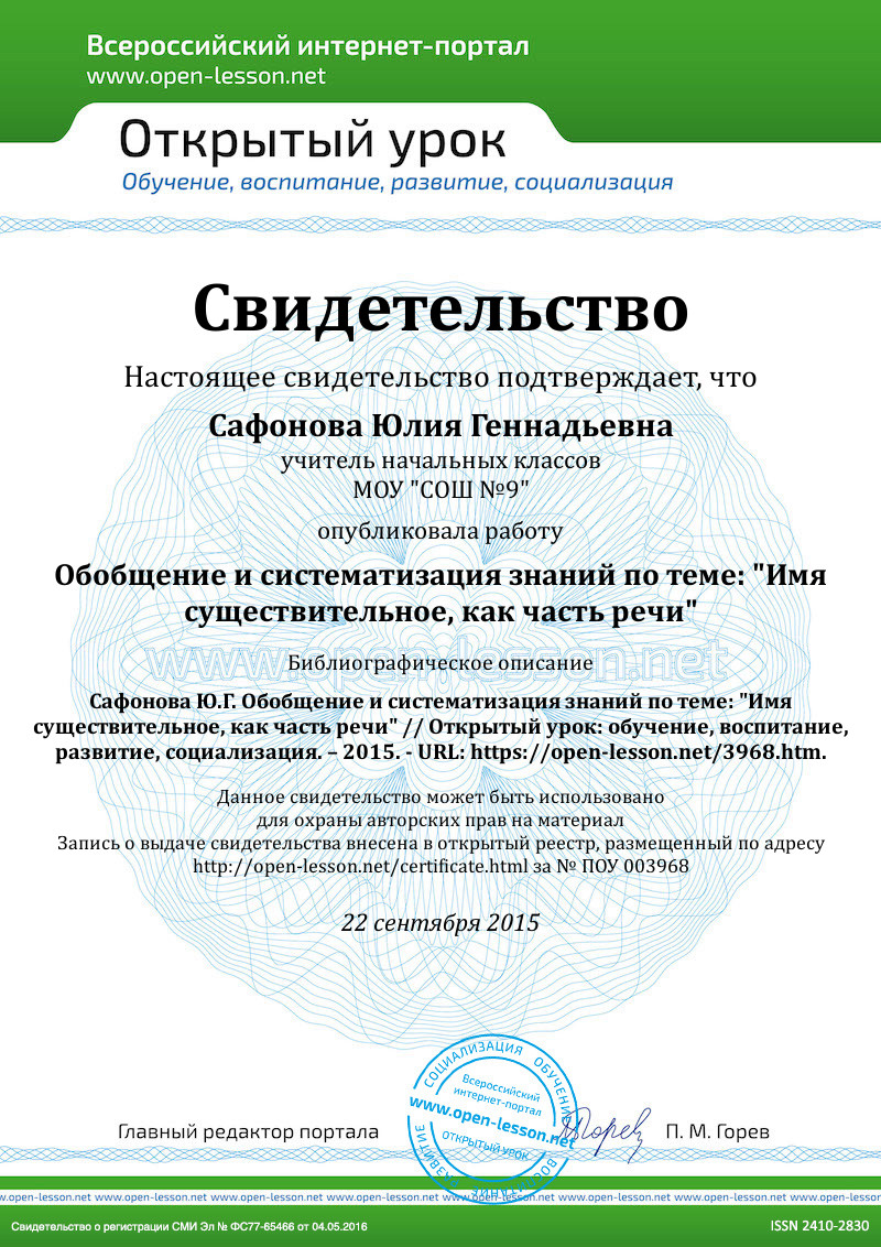 - знание постоянных и непостоянных признаков имени существительного.