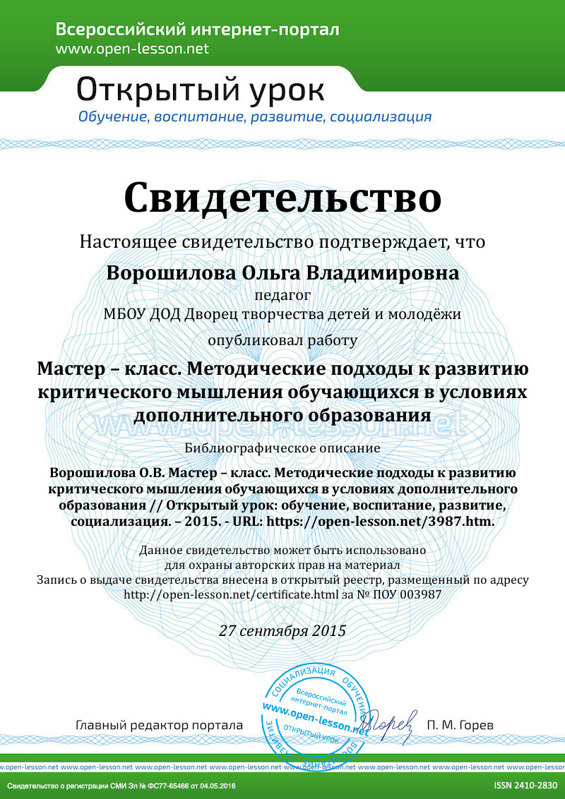 Однако, возникает противоречие между заказом общества на человека социально-активного, сознающего и способного отстаивать свою позицию, и отсутствием практической основы, методологической базы для системной работы, направленной на развитие критического мышления обучающихся, и как следствие, их творческой самореализации.