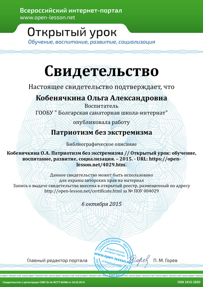 Я благодарю всех, кто сегодня присутствовал и беседовал о таких сложных понятиях, как «патриотизм» и «экстремизм». Я надеюсь, что вы почерпнули самое главное из сегодняшнего классного часа, а именно, то, что нужно быть хорошим человеком, и любить не только своих родных, но и всех окружающих, уважать их взгляды и мнения.