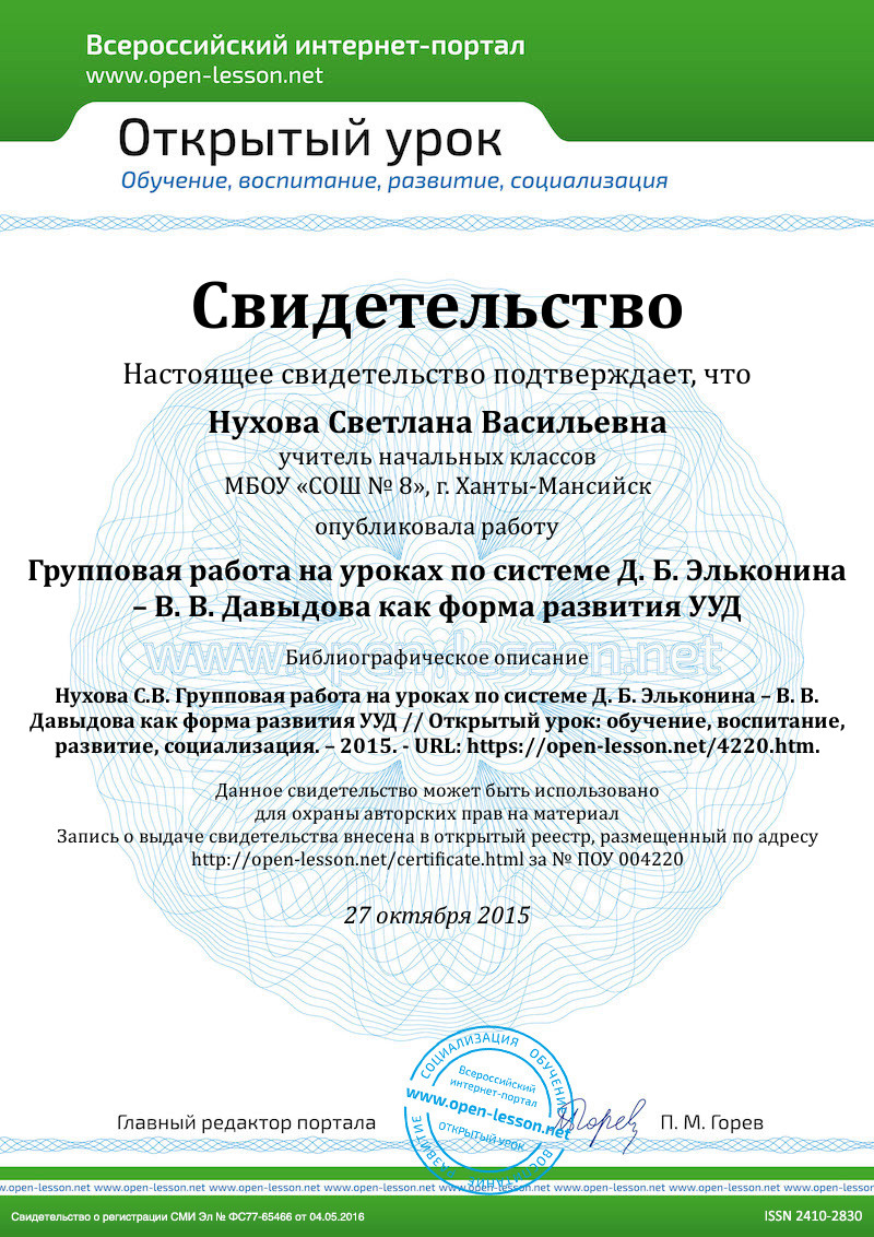 Когда истекло отведенное для работы время или когда работа завершена, учитель организует обсуждение результата работы групп.