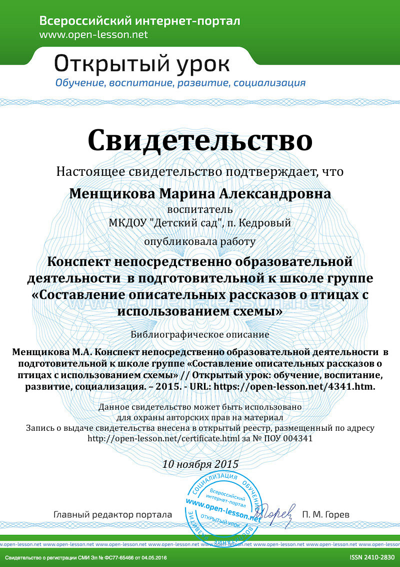 Цель:Учить детей составлять описательные рассказы о птицах.