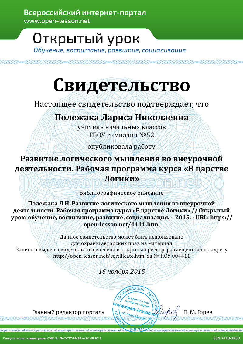 «В царстве Логики » особое внимание уделяю упражнениям, направленным на развитие внимания, наблюдательности, памяти, логического мышления. Однако я пришла к тому, что необходимы дополнительные задания развивающего характера, задания логического характера, задания, требующие применения знаний в новых условиях. Для выполнения таких заданий ученик должен не только владеть запасом определенных понятий, но и уметь устанавливать между ними взаимосвязь, проявлять наблюдательность, проанализировать полученные данные и сделать определённые выводы или открытия.