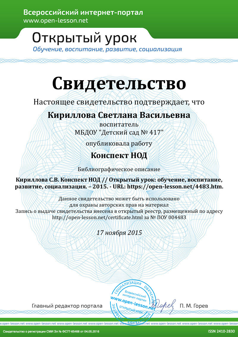 Что это? (Разноцветные стёкла.) Какие яркие! Может быть, они волшебные? Давайте рассмотрим их и поиграем с ними. Возьмите любое понравившееся стекло и рассмотрите его. Рита, какого цвета твоё стекло? (Жёлтого.) А у тебя, Артём? (Синего.) У всех стёкла разного цвета. Какие они? (Разноцветные.) Какое стекло на ощупь? (Гладкое, скользкое.) На что оно похоже? (На льдинку, на гладкую плитку.) Приложите стекло к щеке, какое оно? (Прохладное.) Если посмотреть через цветное стекло, то мир вокруг покажется необычным, волшебным.