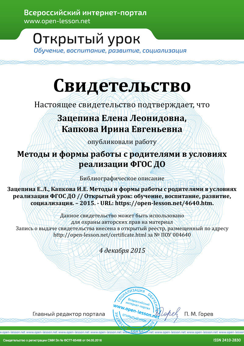 В настоящее время официально признано, что первыми педагогами детей являются их родители (Закон Российской Федерации «Об образовании» ст.18, п.1). В связи с этим появляется необходимость создания условий для взаимодействия с родителями на основе партнерства.