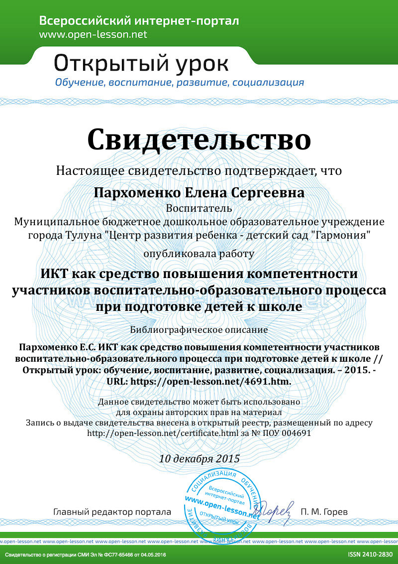 Повышение педагогической и психологической грамотности родителей как реальных заказчиков образовательных услуг: в вопросах подготовки ребенка к школе путём включения в информационное пространство.