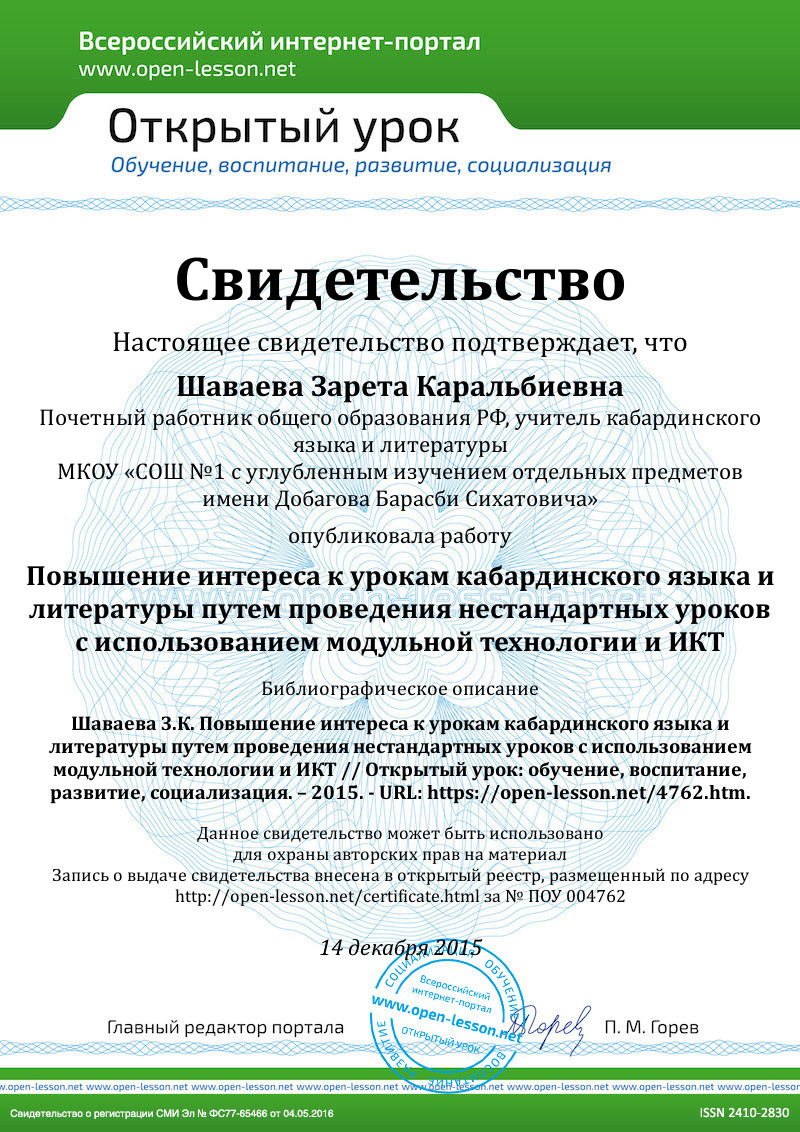 Повышение интереса к урокам кабардинского языка и литературы путем проведения нестандартных уроков с использованием модульной технологии и ИКТ
