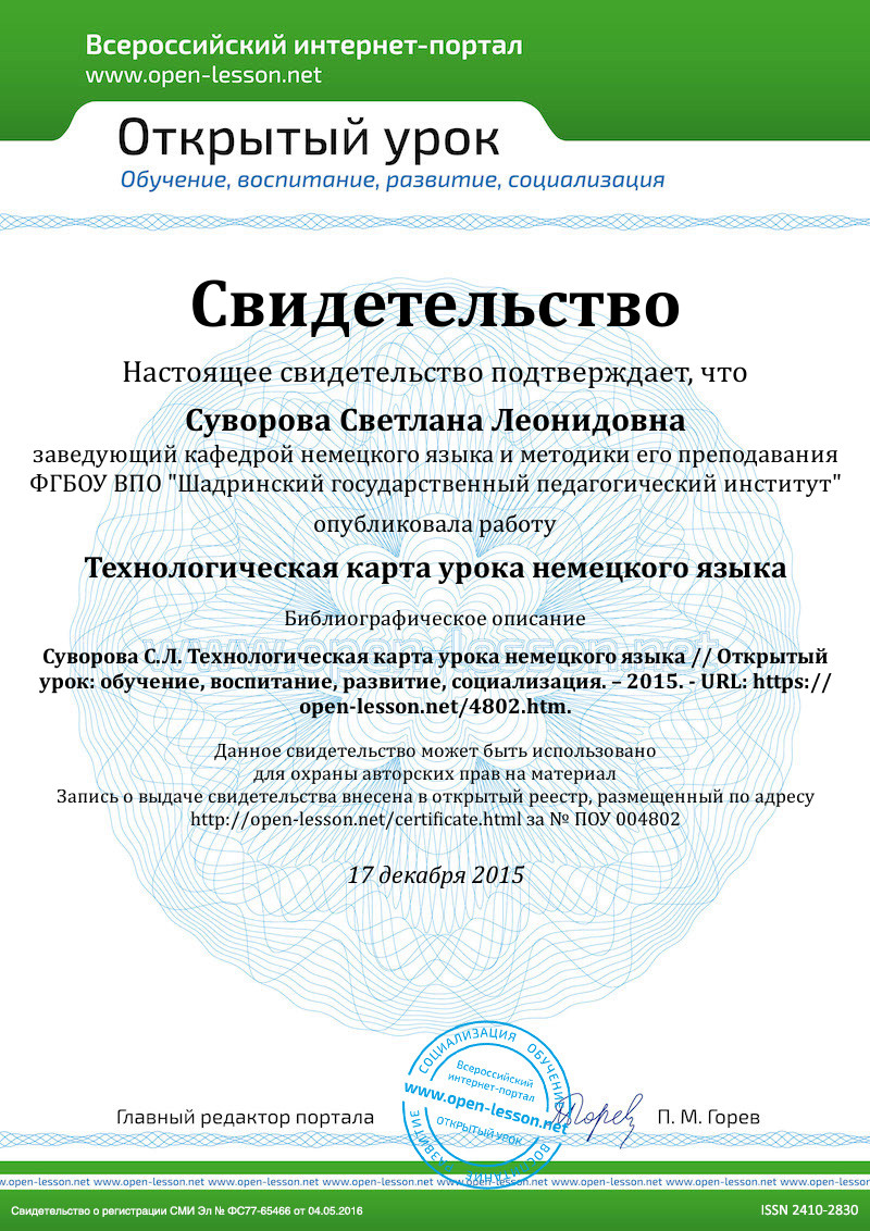 заведующий кафедрой немецкого языка и методики его преподавания, профессор, ФГБОУ ВПО "Шадринский государственный педагогический институт"